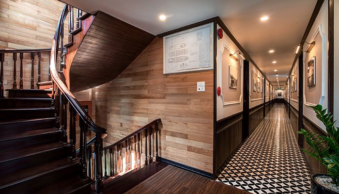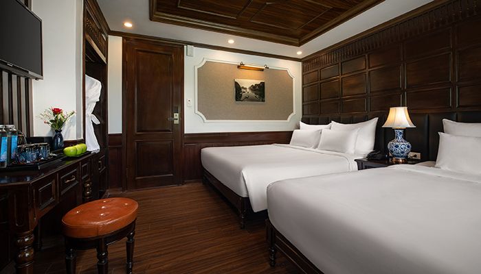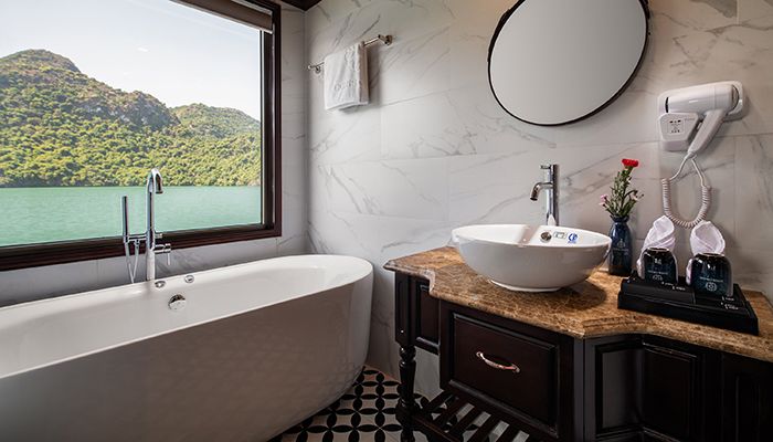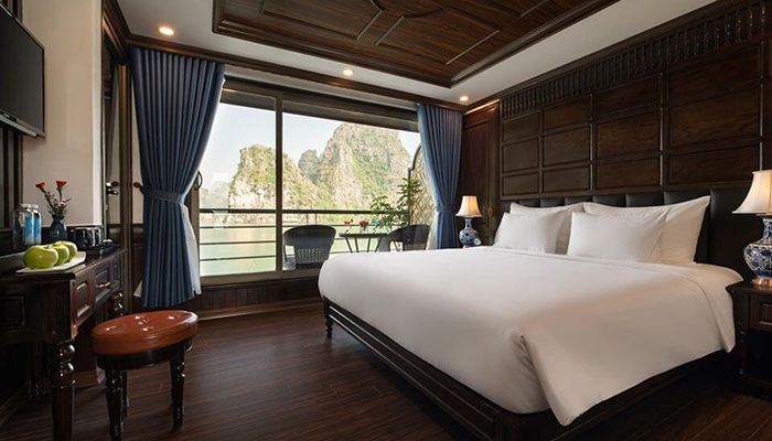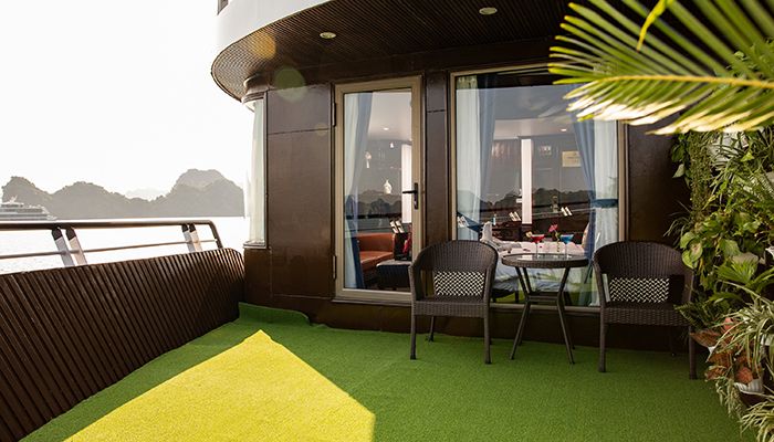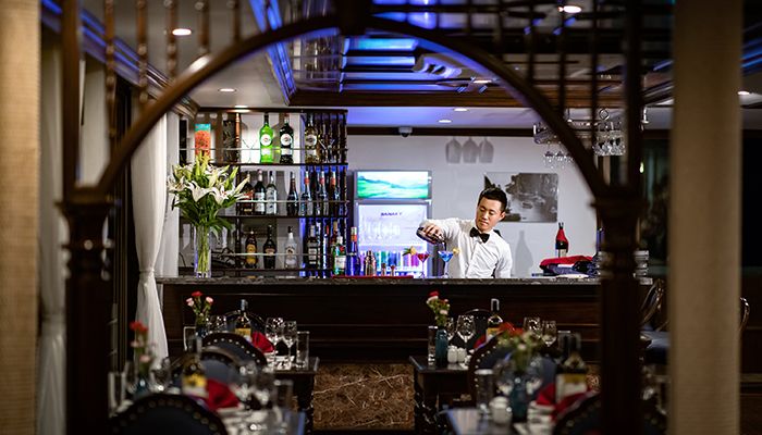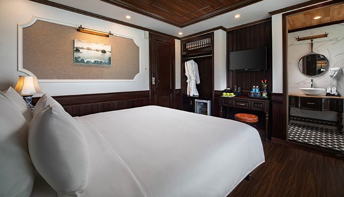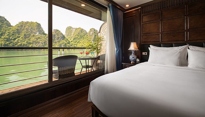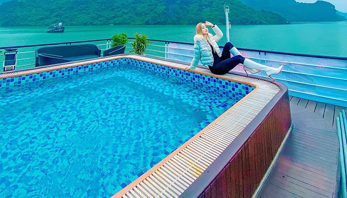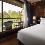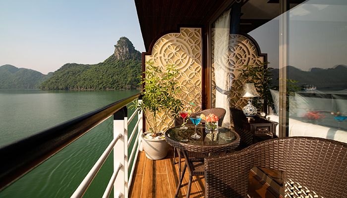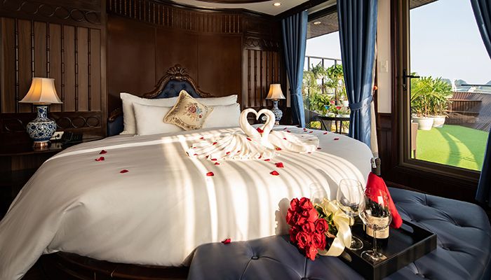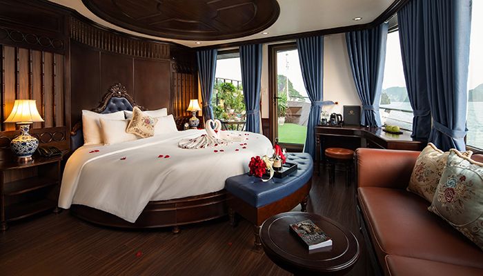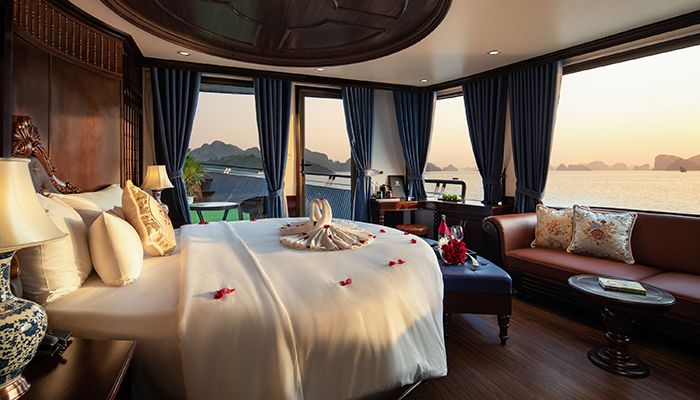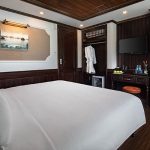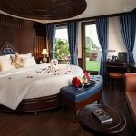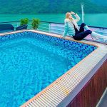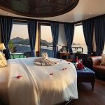 With only 24 luxurious cabins on board with the lowest size of 28 sqm, the cruise will promise the best experience you can take in the bay. Thanks to its architecture, all cabins in La Casta Regal Cruise provide a full ocean view and a private balcony to let you have a panoramic view of the bay. There are 4 available choices of room type, namely, Junior Suite, Senior Suite, Family Suite, VIP Suite – Honeymoon Suite with private terrace – each with its advantages and fitted for a specific group of travelers. Every single detail from the facilities to public amenities are well-equipped that aims to bring the comfiest, coziest, and the most satisfying experiences to customers such as outdoor Jacuzzi swimming pool, beauty spa services, theme party on request, pick up services by Limousine car (on request), luxurious bar and restaurant, and so forth.